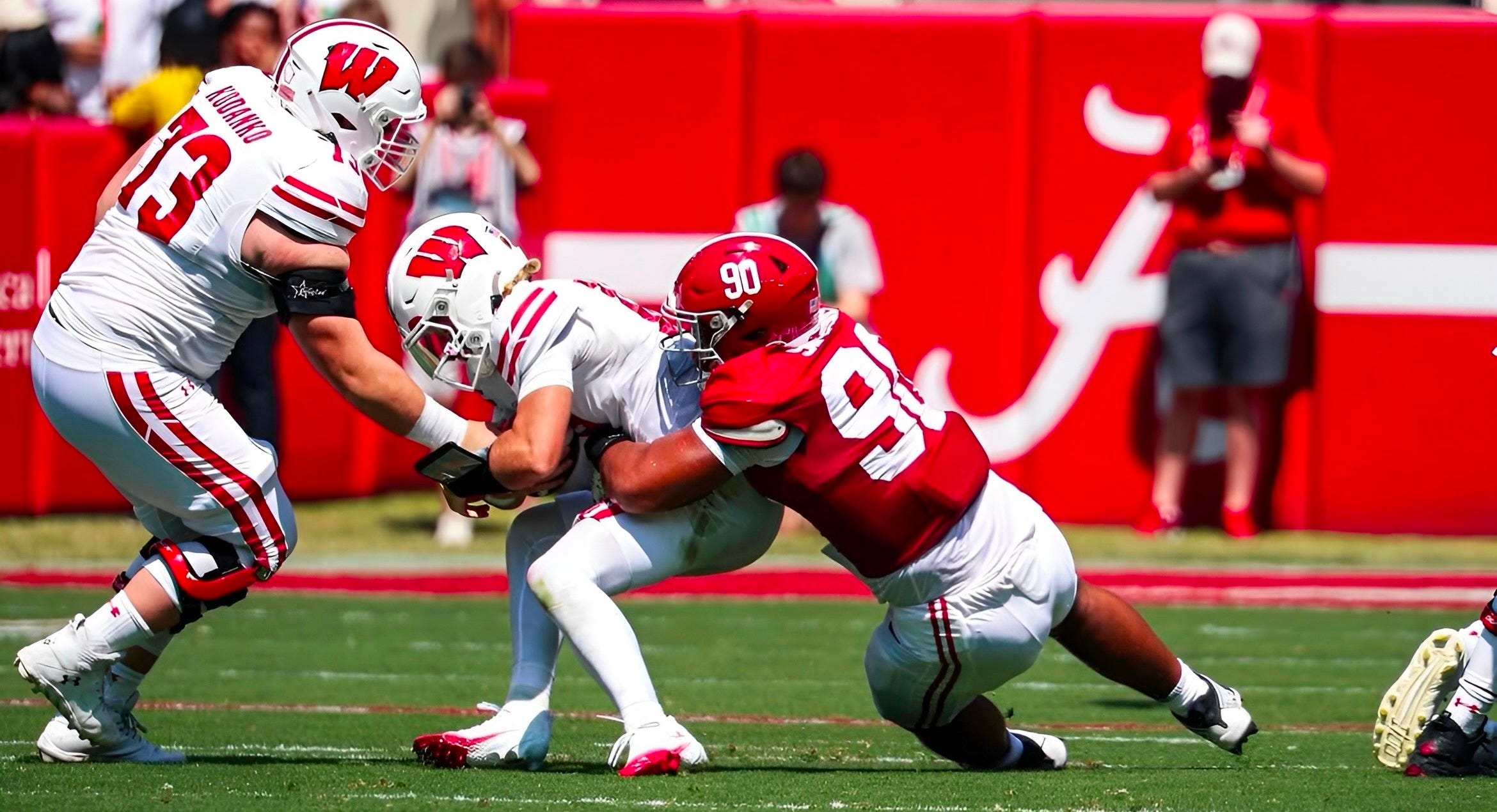If there’s any faint positive, it’s that Wisconsin’s front seven looks better than it did a year ago, even if it’s still nowhere near Alabama’s level. The line held up against the run, allowing 72 yards rushing on 22 attempts (3.3 yards per carry) and showed incremental physicality. They also generated 16 total pressures as a unit, five from outside linebacker Mason Reiger and three from Darrell Peterson, plus Alliegro delivered the lone sack on a play where he trucked Alabama’s running back before finishing off Simpson.