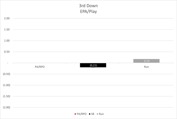 On 2nd Down, they utilized even more PA/RPO, bumping up to 44% of all Play-Calls! That caused a slight dip in EPA/Play, but it was still wildly successful at 0.29 EPA/Play!