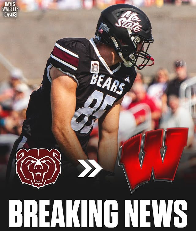 Wisconsin football lands productive FCS transfer tight end from Missouri State