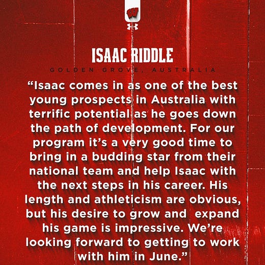 Wisconsin basketball signs Australian forward Isaac Riddle, adding an athletic, developmental piece to its roster for next season.